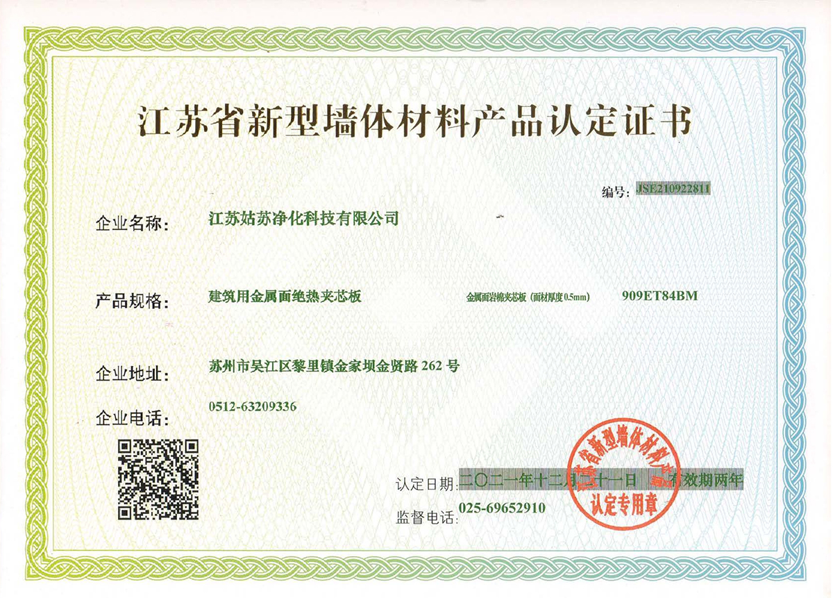江蘇省新型墻體材料產品認定證書