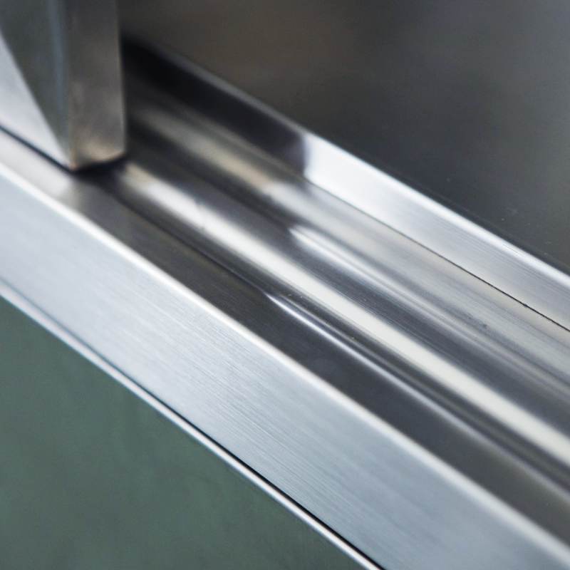 廠,實驗室等各種小型器械的保管和存放,采用sus304不銹鋼板制作,上層為玻璃門,柜體內部為圓弧造型,無死角易于清潔。